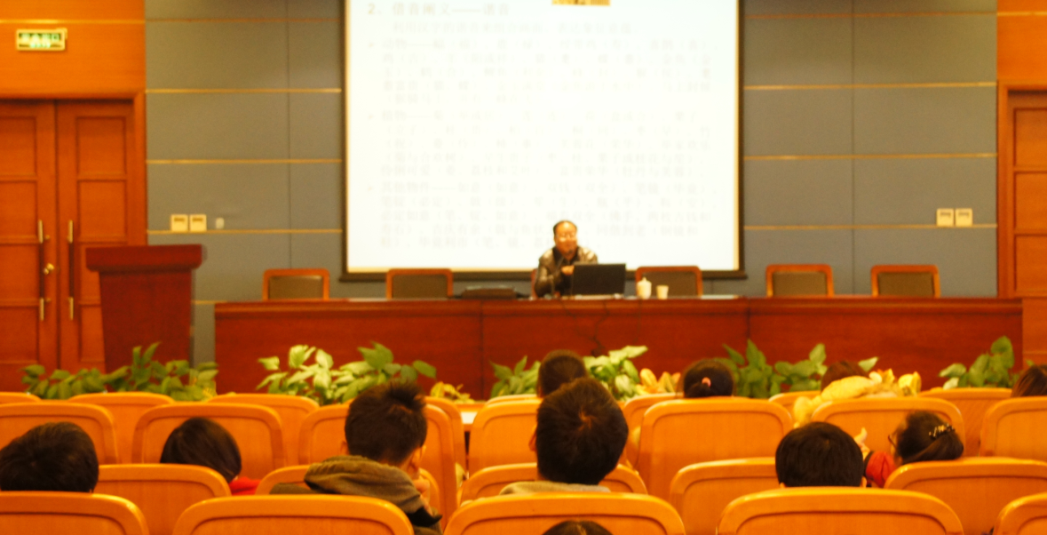 2012年11月27日上午,复旦大学中文系郑土有教授为我校人文学院的同学们做了一场题为《传统民俗艺术现代转化的可能性》的讲座。