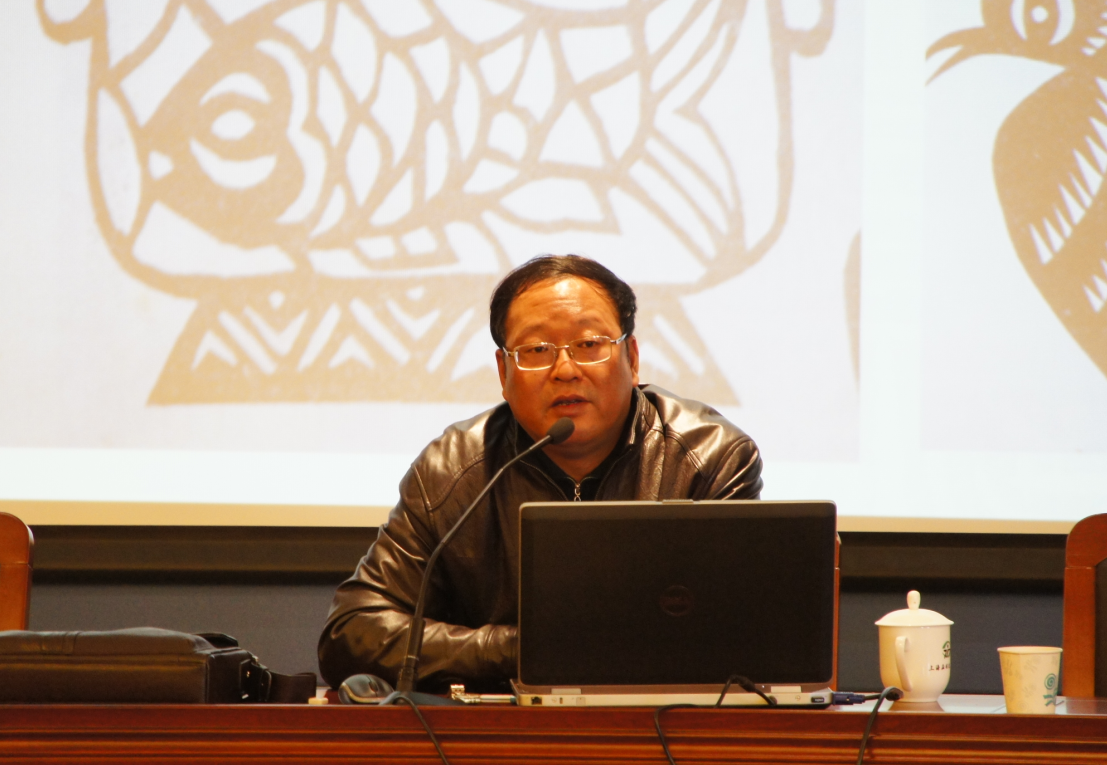 郑教授从“传统民俗艺术的当下窘境”、“传统民俗艺术现代转化的可能性”、“传统民俗艺术现代转化的成功案例”三个方面展开,揭示了传统民俗艺术现实困境背后的深层原因,分析了传统民俗艺术内涵的民族性、传统民俗艺术元素的象征性,以及传统民俗艺术风格的“后现代性”,并且介绍了金山农民画、李守白的创意剪纸、吕胜中的小红人艺术等文化创意的成功个案。郑教授的讲座为同学们打开了中国传统民俗文化的一扇窗口,让同学们领略到传统民俗艺术的魅力,增加对于民众生活智慧的了解,认识到传统民俗艺术现代转化的几种可行路径。最后,师生进行了互动,针对同学们提出的问题,郑教授一一作了解答。郑教授的讲座信息丰富,精彩纷呈,赢得了在座师生的好评。