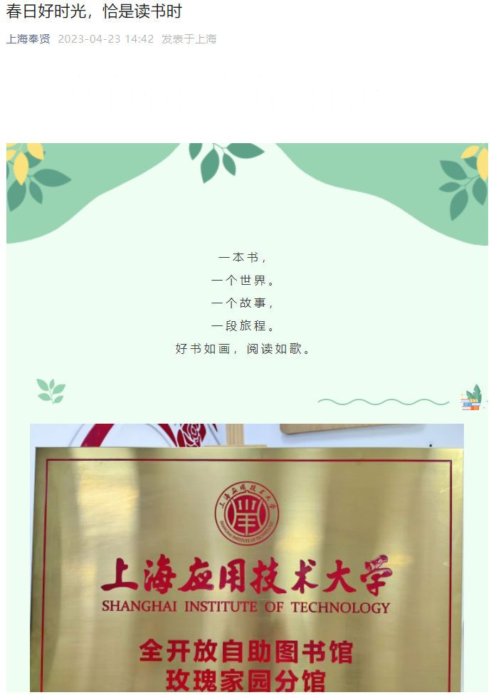 同时,为不断提升全开放自助图书馆服务社会、企业的功能,满足学校周边社区民众和企业职工学习教育的需求,上海应用技术大学全开放自助图书馆陆续在学校周边社区和企业建设六个分馆。