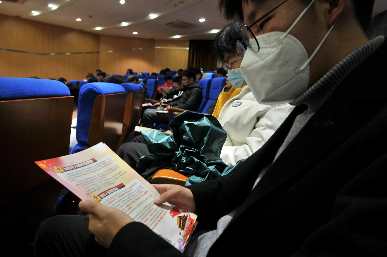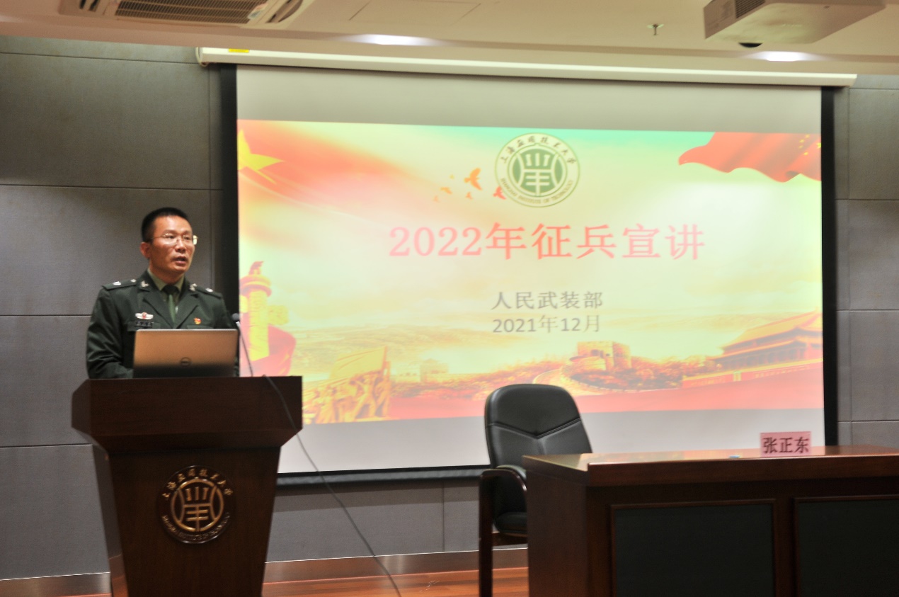 张正东老师首先引用习总书记给南开大学新入伍学生的回信,“希望你们在军队这个大舞台上施展才华,在军营这个大熔炉里淬炼成钢,书写绚烂、无悔的青春篇章”,来鼓励同学们将青春热血交付国家,积极入伍。接着为我们讲解了征兵的意义,并列举了当兵的十大好处,回顾了我校过往征兵经历,展示了我校参军精兵风貌。当兵是光荣的使命,是强国的召唤,是青年人的义务与责任,张正东老师号召同学们踊跃报名,参军报国,实现人生价值,为国防建设贡献力量。