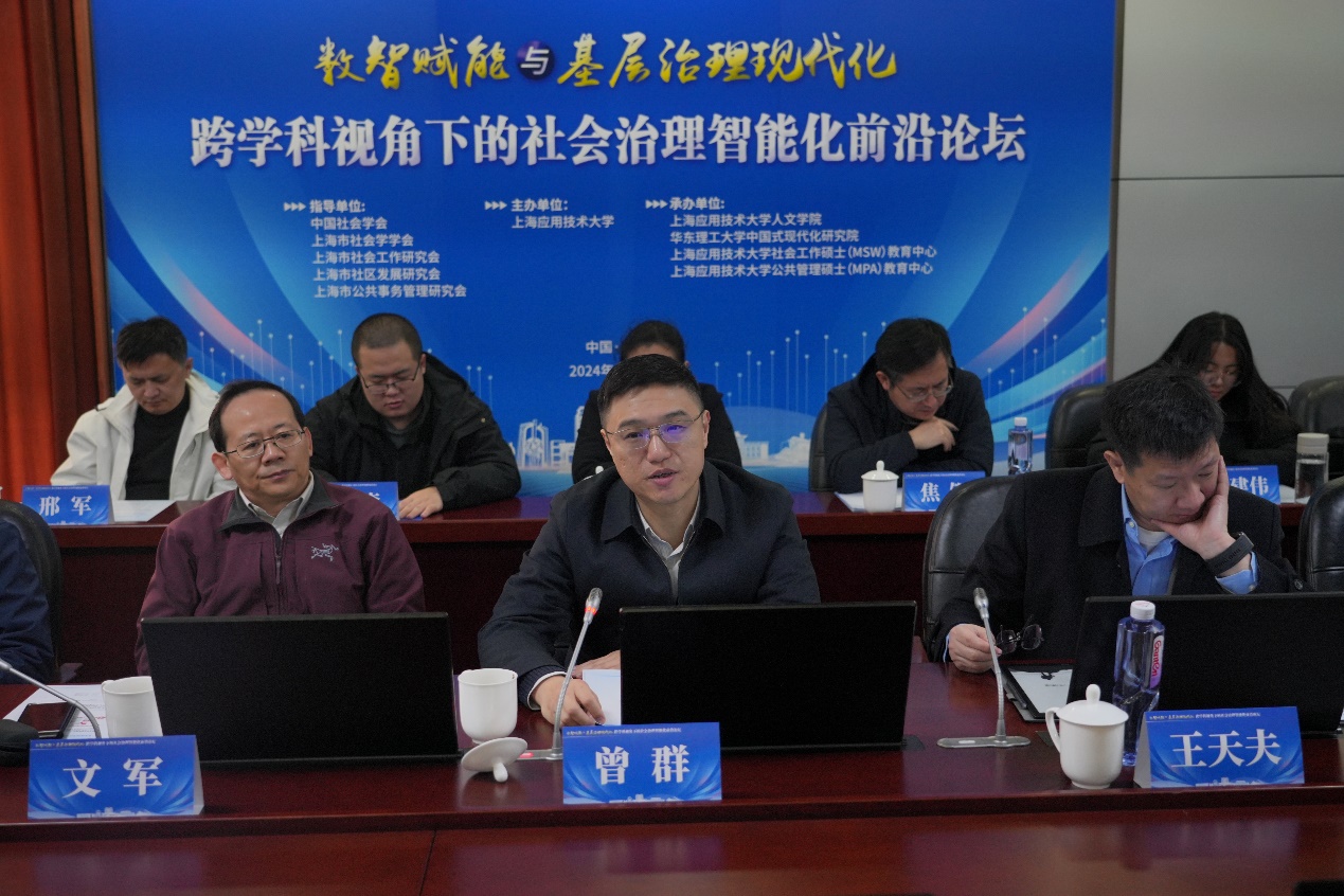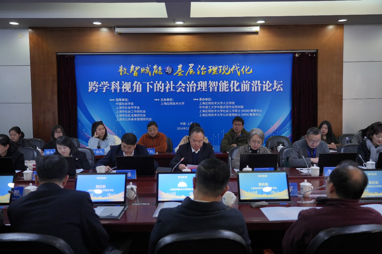 12月8日,由中国社会学会、上海市社会学学会、上海市社会工作研究会、上海市社区发展研究会、上海市公共事务管理研究会指导,上海应用技术大学主办的“数智赋能与基层治理现代化——跨学科视角下的社会治理智能化前沿论坛”在我校徐汇校区举行。来自清华大学、复旦大学、上海交通大学、华东师范大学、同济大学、华东理工大学、上海市委党校等高校院所,以及上海市委社会工作部与黄浦区、闵行区、奉贤区、宝山区区委社会工作部和16个街道办事处、行业机构的100余人参与,共同为数智赋能与基层治理现代化献言献策。校科研院院长杜永教授主持开幕式。