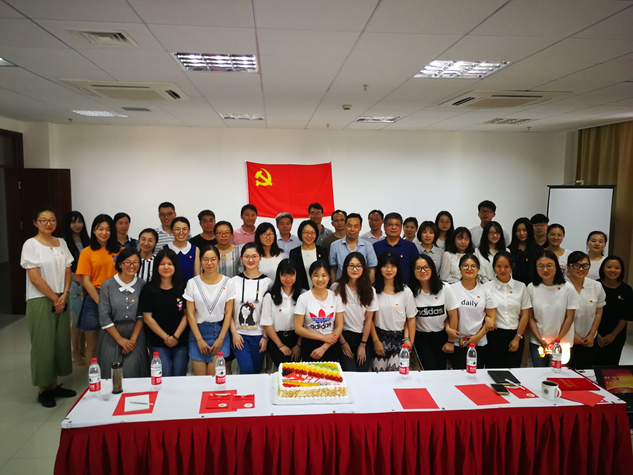 第二部分为“对标争先—立足岗位建新功”。总支表彰了学院在2017-2018学年涌现的优秀共产党员,启动了党员先锋岗行动,号召教师党员向优秀党员看齐,争做教学、科研排头兵,人才培养先行者。优秀学生党员代表宣读承诺书,表示在日后的学习生活中积极做表率、争先锋,树标杆。最后,总支为每位党员准备了政治生日贺卡,师生党员齐唱红歌《党啊,亲爱的妈妈》,共同祝福党的97周年华诞。