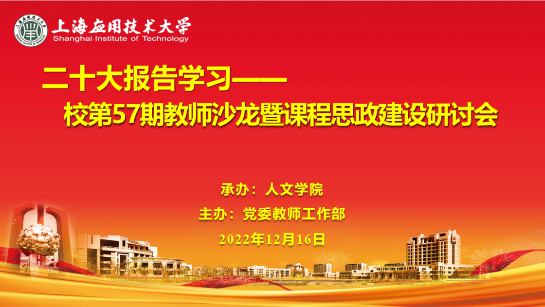 12月16日,由党委教师工作部主办、人文学院承办的校第57期教师沙龙暨学习党的二十大精神专题报告会线上举行。人文学院文化产业管理专业张旭阳老师、劳动与社会保障专业戴建兵老师分别作了交流分享。人文学院班子成员及全体教职工参加。党委教师工作部副部长、人事处副处长彭亚萍教授应邀出席,人文学院副院长肖昕茹主持研讨会。