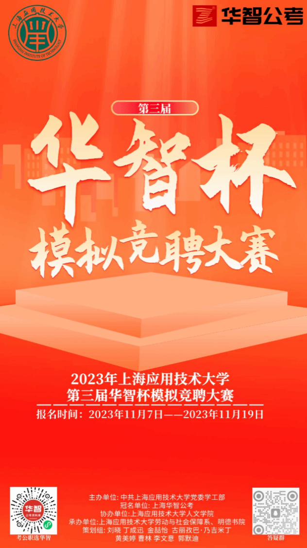 上海应用技术大学2023年“华智杯”模拟竞聘大赛正式启动,本次大赛由考公职,选华智,专注上海公考20年的公考专业机构——上海华智公考独家冠名赞助。
