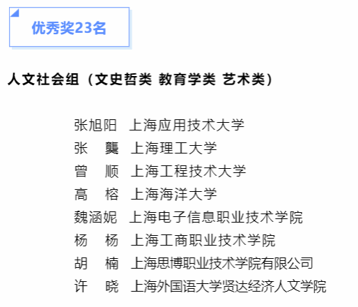 近日,由中共上海市教育卫生工作委员会、上海市教育委员会指导,上海市师资培训中心、上海市学生德育发展中心、上海市教育发展基金会联合成功举办2022年度第三届“上海高校青年教师培养资助计划”课程思政教学案例展演活动,我校教师代表在活动中取得优异成绩,我院张旭阳老师荣获人文社会组优秀奖。