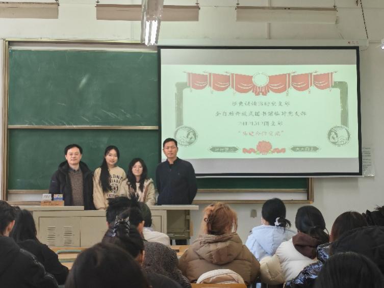 3月19日,人文学院教工第一党支部与24121312团支部联合举办共建合作交流活动。教工第一党支部书记王展老师(兼任经典诵读临时党支部书记),杞万村老师(兼任全开放自助图书馆临时党支部书记),文化产业管理专业24121312班全体团员和部分学生代表出席。24121312团支部书记王奕颍同学主持活动。