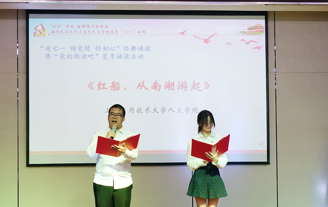师生代表化身为“朗读者”,开展了“迎七一 颂党情 悟初心”经典诵读暨“党的朗读吧”夏季诵读活动。《红船,从南湖游起》合诵回顾了建党以来走过的峥嵘岁月和辉煌成就,也借此向伟大的中国共产党献上祝福。合诵《同忆上应岁月,共创美好未来》,以一个一个大事记,回顾了学校牢记“立德树人”根本使命,以“厚德竞技 追求卓越”的工程师文化培育人才的精彩成绩。