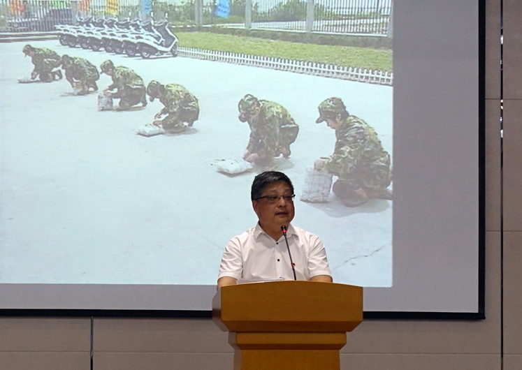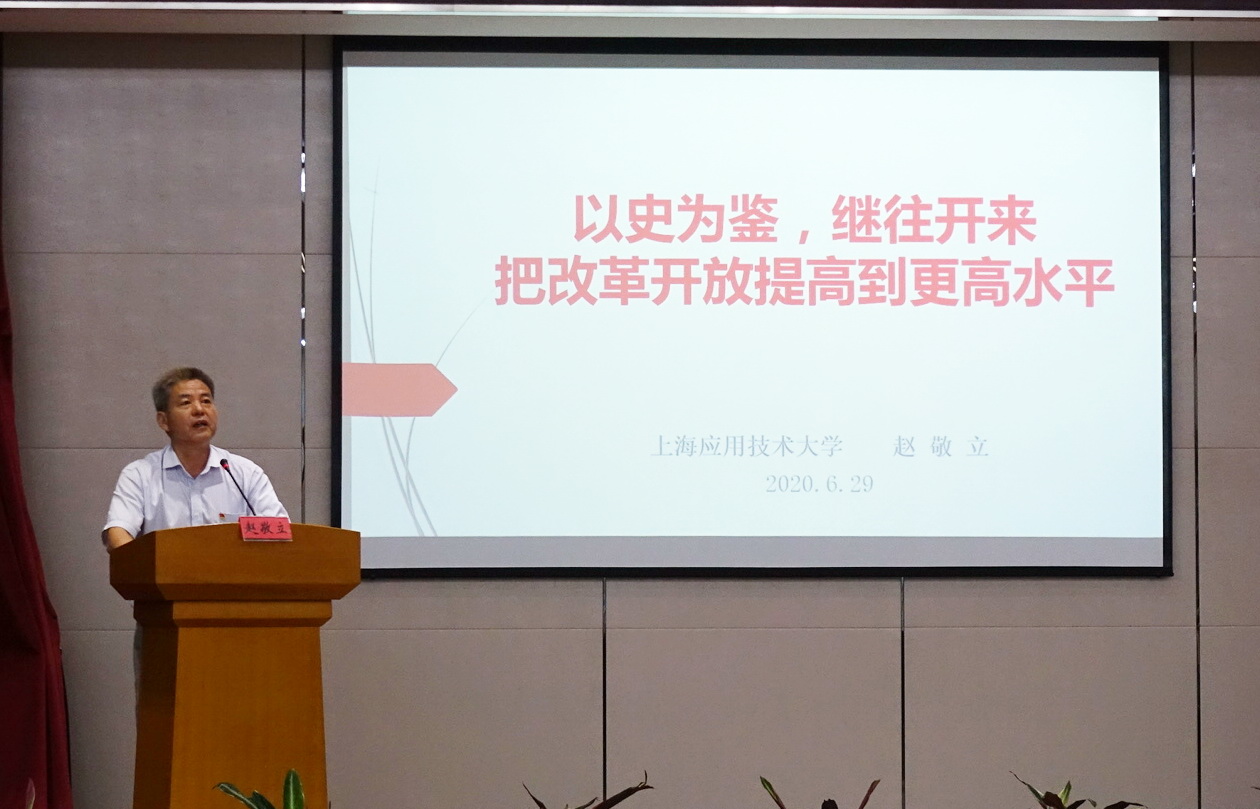 立足奉贤地方史调查,刘红军以《讲述海防文化,重温历史余韵》为主题带领大家重温了古海塘抗倭故事,讲述了海防文化,传递了家国情怀。学院教工第一党支部书记赵敬立通过回顾开放史,《以史为鉴,继往开来,把改革开放提高到更高水平》,向与会党员上了一堂生动的微党课。