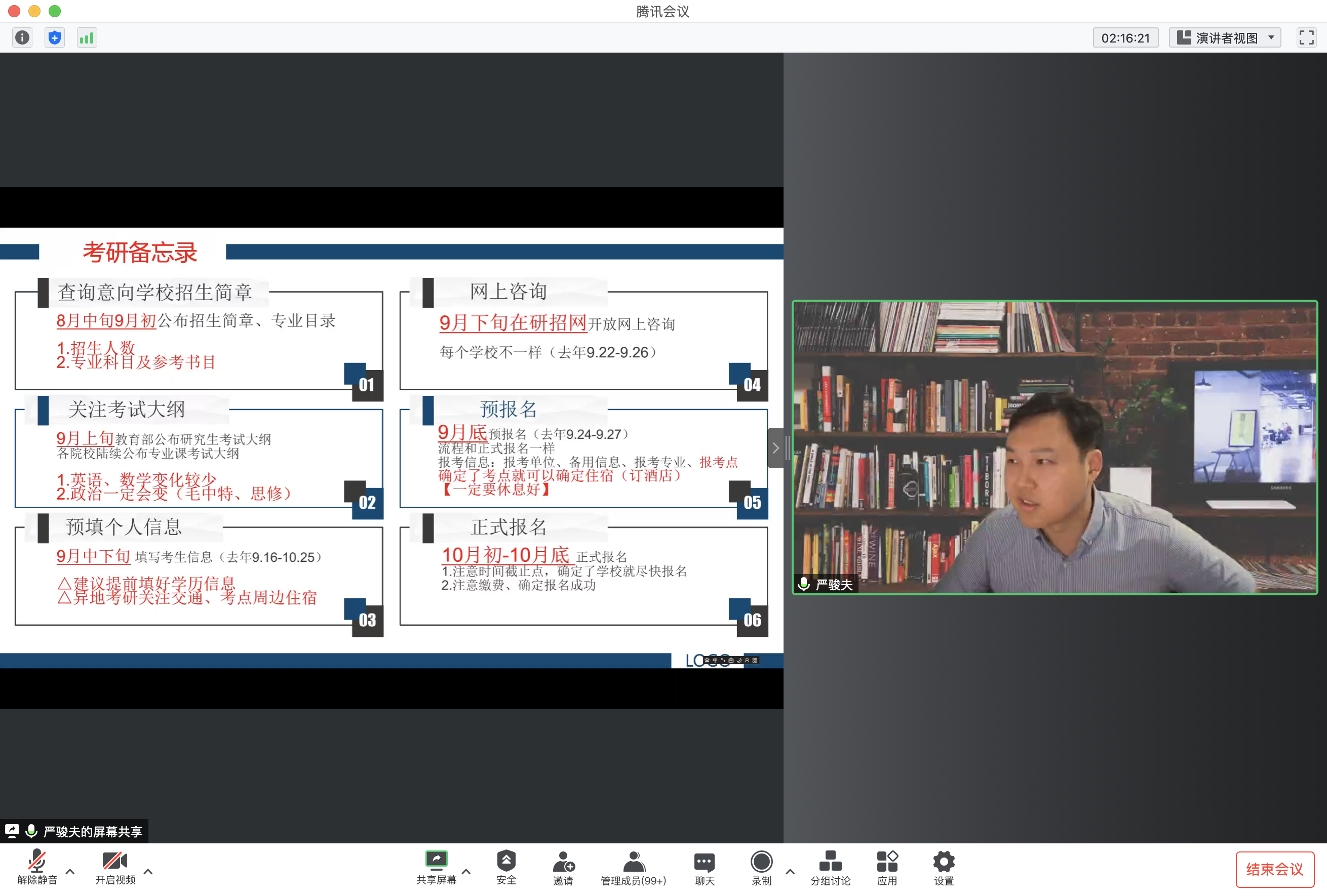 会议最后,MSW学位点建设组办公室副主任严骏夫博士详细介绍了我校MSW招录、培养以及落户方面的相关政策、考研备考关键环节以及MSW的就业前景。他重点介绍了我院为社会工作专业硕士量身打造的特色奖助政策与项目,包括资助在读MSW参加国际国内重要学术会议、资助大力度鼓励参加国家级市级学科竞赛、举办上海市MSW研究生论坛、开展院级研究生沙龙等丰富多彩的研究与实践活动等。