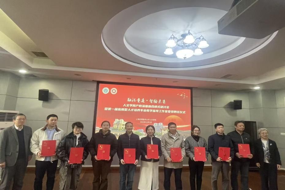 为进一步深化教育综合改革,落实四双四改人才培养综改精神,探索产教深度融合新模式,2025 年 12 月 5 日,人文学院在上海市徐汇区漕宝路 120 号图书馆 117 会议室隆重召开 “融汇贯通・智绘未来” 产教深度融合模式研讨会暨第一届应用型人才培养专业教学指导工作室委员聘任仪式。