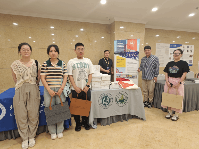 本次会议设置主旨报告、分论坛、展位交流、专题培训、实地参访等环节。人文学院人文学院李正东教授担任企业社会工作分论坛联合主席,人文学院教师严骏夫博士、田梓君老师及五位硕士研究生积极参加学术报告、展位宣讲活动。在展台宣传和交流环节,人文学院师生精心布置,准备详细宣传资料和文创礼包,国内外参会者们介绍学校发展情况及社会工作硕士教育中心建设情况并同其他海内外高校和期刊进行良好互动,互相交流专业建设和科研心得。