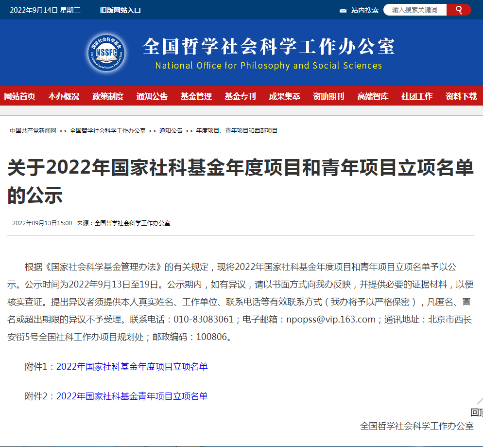 国家社科基金年度项目和青年项目是社会科学领域级别最高、权威性最强、影响力最大、关注度最高的科研项目。其覆盖面广、影响大,具有重要的示范和引导作用,历来是各高校竞争和关注的焦点之一,是衡量高校科研水平和实力的重要标志,备受瞩目。在国家社科基金年度项目和青年项目竞争日益广泛化和激烈化的情况下,此次我院三位教师同时获得立项,体现人文学院科研水平发展的良好势头。
