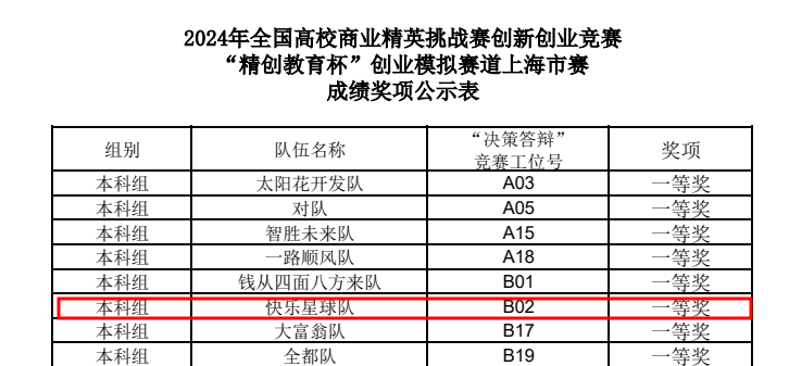 2024年5月24日,全国高校商业精英挑战赛创新创业竞赛“精创教育杯”创业模拟赛道,上海市赛在华东师范大学普陀校区举行。本届上海市赛共有来自近30所院校的百余支队伍参赛,经过线上模拟、线下决策答辩等竞赛环节,人文学院选送的劳动与社会保障、文化产业管理、社会工作本科生队伍团结协作、努力拼搏,取得一等奖,创学院参加该项赛事市赛最佳战绩。
