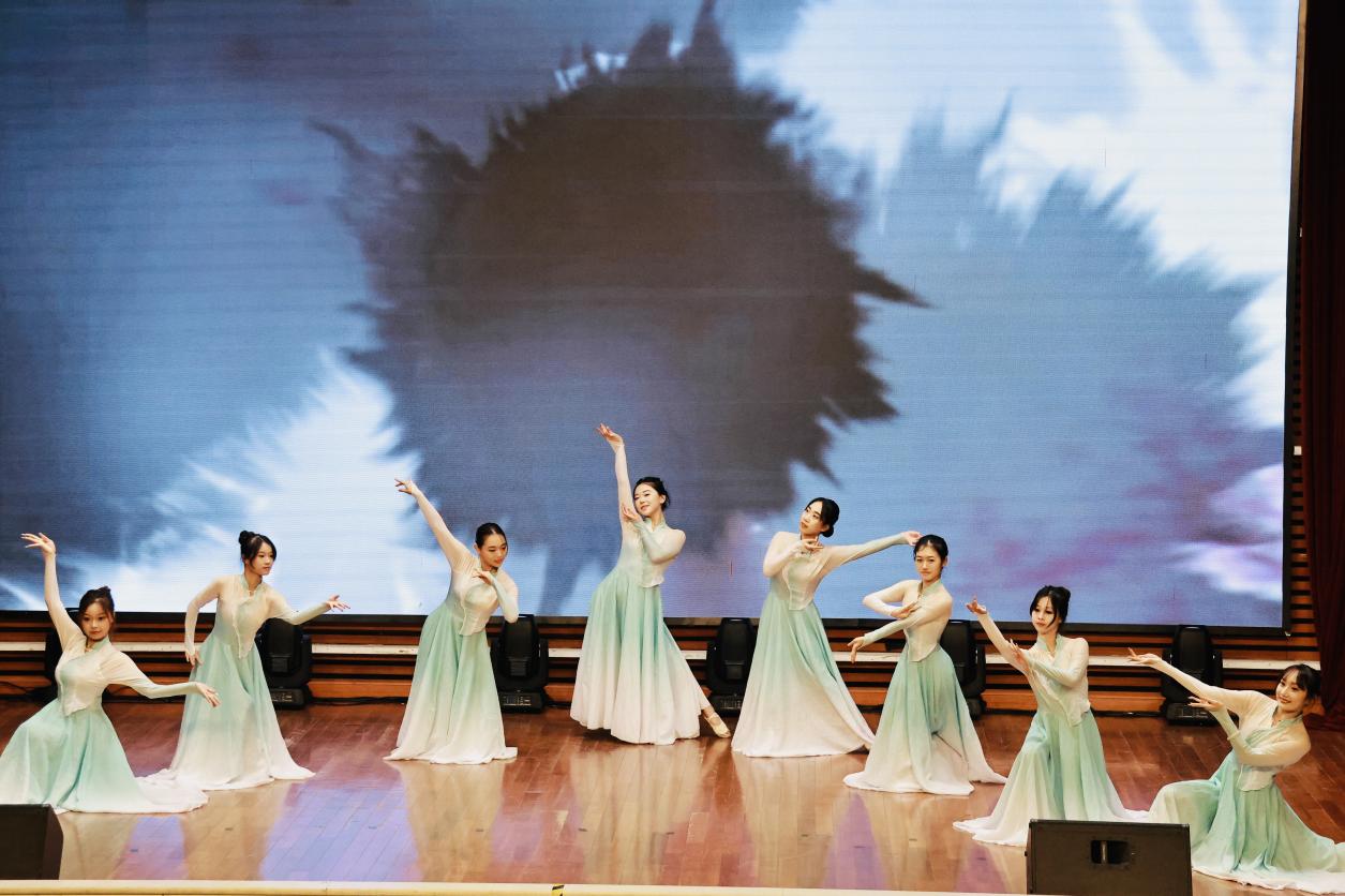 开幕式在古典舞蹈《知否知否》中徐徐拉开帷幕。同学们以轻盈翩跹的舞姿,生动诠释了李清照笔下“绿肥红瘦”的细腻景致,瞬间将现场观众带入诗情画意的古典意境。