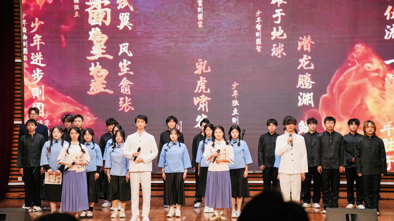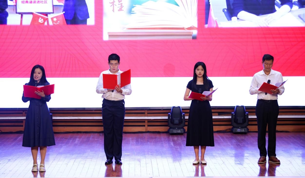 特别环节中,人文学院师生代表详细介绍了学校经典诵读活动的发展历程与丰硕成果。从经典诵读进课堂到深入“一站式”学生社区、走进周边社区,生动彰显了学校对文化传承的坚守与担当。袁翔为2024届经典诵读领航员颁发荣誉证书,周文、李正东共同为2025届经典诵读领航员颁发聘书,激励青年学子勇担文化传承使命。