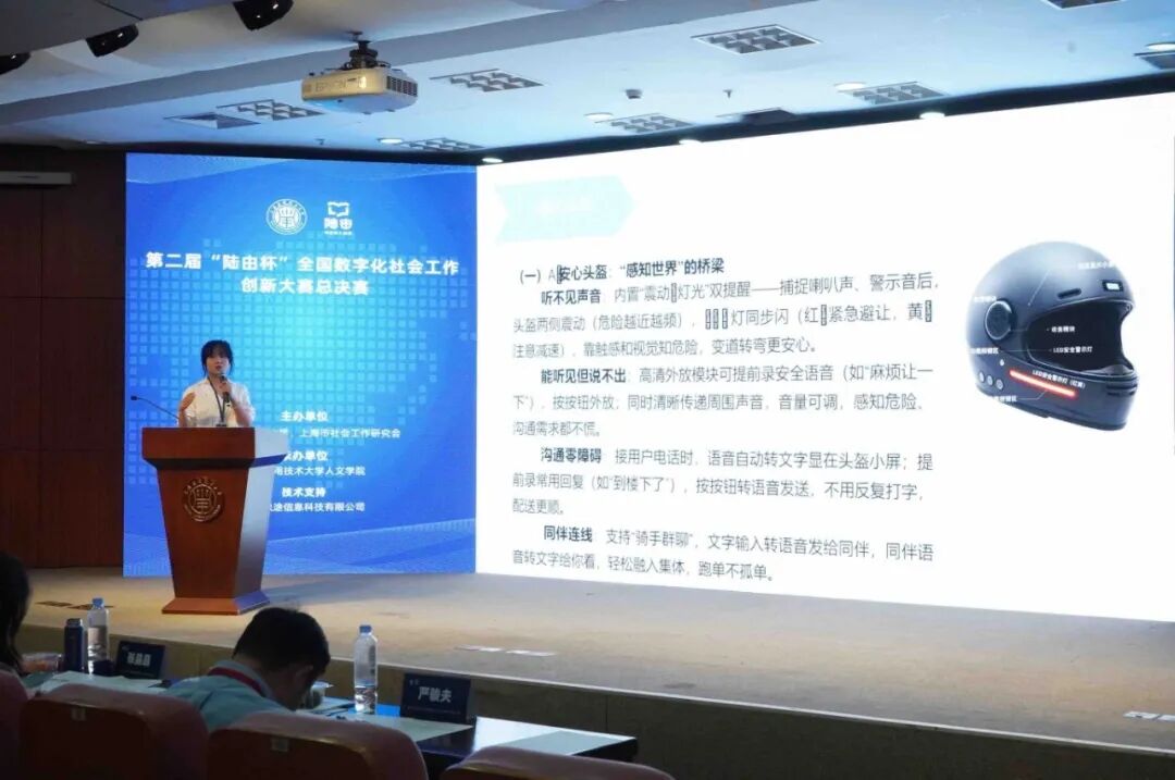 在现场答辩环节,43支晋级队伍围绕老年、青少年、儿童、医务、农村及残疾人社会工作等领域,展示了AIVR等数字技术的融合应用方案。参赛项目覆盖视听障碍帮扶、老年人健康关怀、社区营造及非遗文化传承等多个方向,体现出数字技术与人文关怀的深度融合。与首届赛事相比,本届作品的数字化应用更为多元,AI生成图像、数字人、智能体等技术构想纷纷亮相,呈现出创新活跃、应用深入的显著特点。