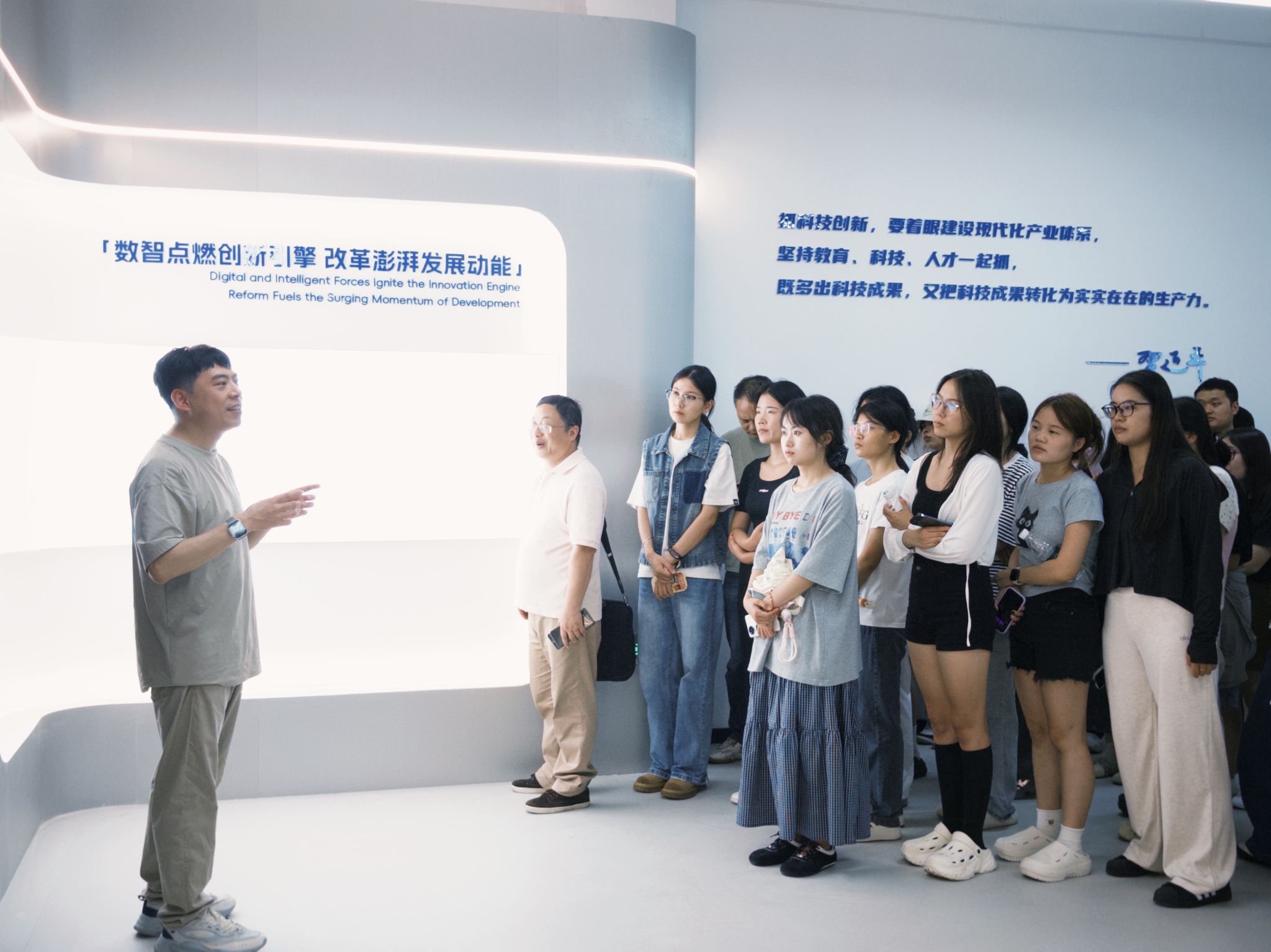 丰富党课形式、创新党课实践,2025年9月17日,人文学院党委书记周文、院长李正东率学院师生一行,前往奉贤区金海街道,开展"党建引领下的智慧社区建设与基层治理现代化"现场党课学习。金海街道党工委书记、人大工委主任朱崇江,街道党群服务中心书记屠欢等街道领导热情接待并陪同现场交流。人文学院副院长周正柱,社会工作硕士教育中心副主任严骏夫、张涛以及全体社会工作专硕五十余名新生参加此次党课。