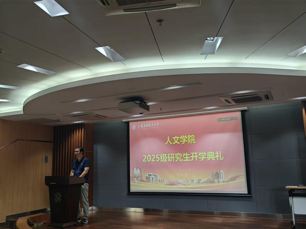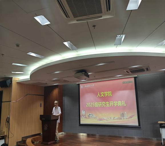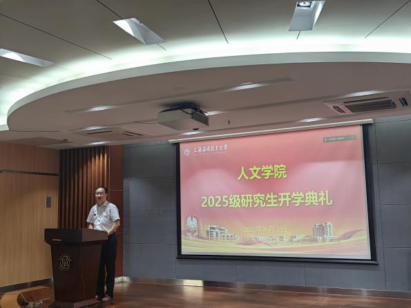 近日,上海应用技术大学人文学院2025级硕士研究生开学典礼暨研究生导师见面会在六科B210报告厅隆重举行。会议由副院长周正柱主持,人文学院党总支书记周文、院长李正东、党总支副书记兼副院长徐津津、副院长肖昕茹以及社会工作系、劳动与保障系、文化产业系系主任等导师代表,与全体2025级硕士新生齐聚一堂,共同开启新生们的研究生学术新篇章。