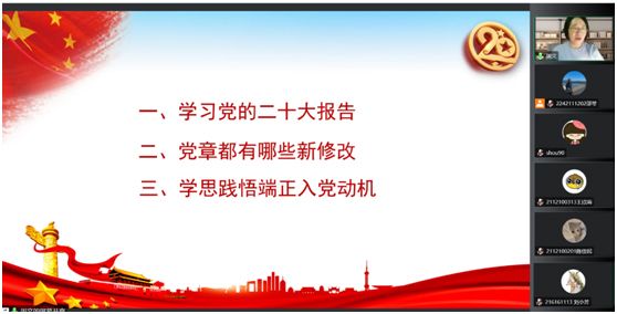 开学典礼结束后,人文学院党总支书记、分党校校长周文为各位学员上了第一堂党课。本次党课围绕着学习二十大报告精神,坚定理想信念,端正入党动机展开。周老师分别从学习党的二十大报告精神、党章都有哪些新修改和学思践悟端正入党动机三个层面带领学员们进行了第一堂党课的学习。党课上,周老师带领大家学习了二十大报告精神,讲解了党章的新修改内容,并以大学生为什么要追求入党为切入点帮助大家端正入党动机。最后,周老师以党的二十大报告结语激励学员们,期望学员们要紧密团结在党中央周围,牢记空谈误国、实干兴邦、坚定信心、同心同德,埋头苦干、奋勇前进,为全面建设社会主义现代化国家、全面推进中华民族伟大复兴而团结奋斗!