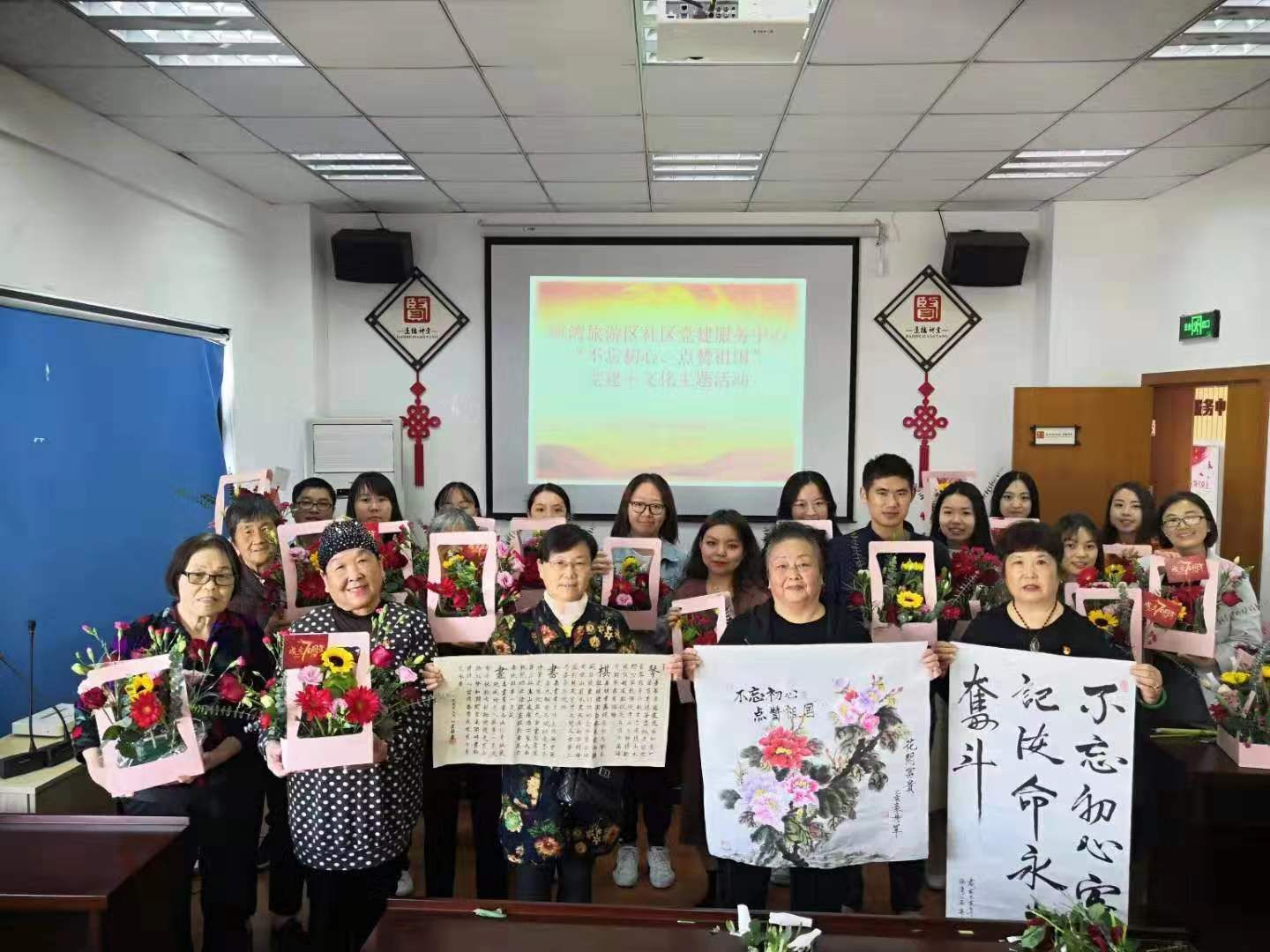 活动在观看《我和我的祖国》快闪中拉开序幕,全国五一劳动奖章获得者朱道义受邀作插花培训,在朱老师的指导下,学生党员、入党积极分子与社区党员一起完成了十分漂亮的插花作品,与会代表通过字、画为新中国成立70周年表达祝福。在交流环节,党员、入党积极分子代表分别为祖国点赞,分享了新中国成立70年的所感所想,表达了老中青三代在不同历史阶段的初心、使命和担当。之后,学生党支部参观了海湾旅游区党建服务中心、学雷锋志愿服务站,双方就“海好有你”净滩活动、“红色海岸线”公益志愿活动达成党建合作意向。