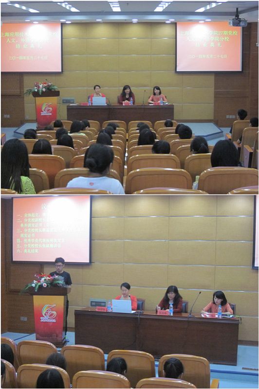 2014年5月27日,上海应用技术学院第27期党校我院文、外语分校结业典礼在图书馆B102举行。人文、思政联合党总支副书记(主持工作)、分党校校长韩磊、外国语学院党总支书记、分党校校长张淑梅,外语学院副书记、副院长、分党校副校长金丽华、分党校联络人以及全体学员出席大会。
