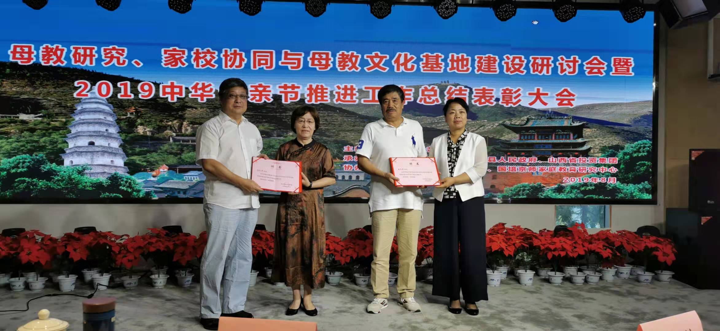 为继承和弘扬中国优秀传统文化,深度拓展中华母亲文化的丰富内涵。8月21日-24日,由中华母亲节促进会主办,中共太谷县委、太谷县人民政府、山西省投资集团承办的“母教研究、家校协同与母教文化基地建设”研讨会暨2019中华母亲节推动工作总结表彰大会在山西太谷县隆重召开。中华母亲节促进会会长、全国妇联原副主席、农工党中央原副主席汪纪戎,北京市家庭建设促进会会长刘延宁,武警甘肃省总队原副司令员孙魁,中国孟子研究院院长袁汝旭,我校人文学院院长刘红军,生态技术与工程学院院长张志国等各界嘉宾共百余人受邀参加本次大会。
