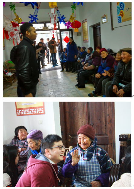 当日,师生们赶到睦邻点随即加入热闹纷呈的“包汤圆”环节。在阿姨奶奶们的亲切指导下试着动手包汤圆。临近中午,师生们将刚出锅热腾腾的汤圆送至村里几户有困难的老人家中。在这个春寒料峭、丝雨绵绵的日子将温暖传递开来。中午大家和老人们一起吃元宵。品尝元宵后,师生与老人们结对子,组团挑战当日的“猜灯谜”游戏。当天,我校一名来自非洲的留学生也加入到送温暖的志愿者中。他当天学做元宵、送元宵,到老人家中帮忙贴春联,互动中他还用中文为老人们深情献唱一曲《当你老了》,现场观众皆为之动容。当天整个睦邻点都沉浸在祥和热闹的节日气氛中。