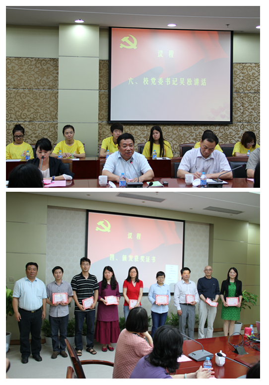 校党委书记吴松做了重要讲话。吴书记首先回顾了中国共产党的建党历程,他指出中国共产党自1921年建党以来,尤其是在改革开放后,带领全国人民在经济社会发展方面取得了突出的成绩,一系列的变化表明,中国共产党是伟大、光荣、正确的党,是值得人民信任、追随的党,中国共产党将一如既往的坚持三个自信,即“道路自信、理论自信、制度自信”,毫不动摇的走中国特色的社会主义道路。随后,吴书记要求各基层党组织以服务型党组织建设为目标,积极发挥党支部的战斗堡垒作用和党员的先锋模范作用。吴书记指出,校党委、各基层党组织要紧跟时代的脉搏,从服务型党组织建设着手,从服务于学校的内涵发展出发,继续贯彻执行党的群众路线,切实增强基层党组织的凝聚力和战斗力。各支部要以支部建设为抓手,把支部建设与工作内容相结合,为师生发展做贡献。最后,吴书记从学校的转型发展出发,要求各学院、各部门在应用技术教育的大背景下,不断调整办学思路和育人目标,为把我校建设成职业教育的领头羊而不断奋斗。