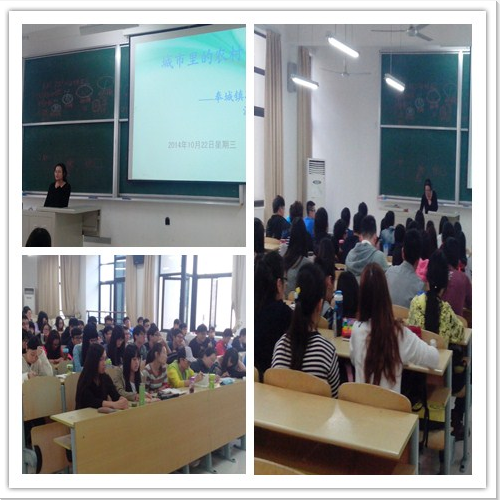 受人文学院社会工作系陈彧老师之邀,2014年10月22日,奉贤区奉城镇冯家村村书记助理沈爱华老师前来我校进行一场题为“城市里的农村”的主题讲座。本次讲座是2012级社会工作专业本科培养计划中,《社区工作》课程实践教学的有益一部分。