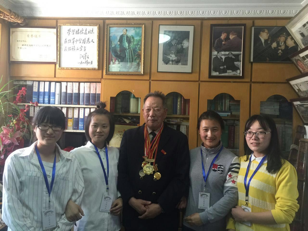 随后,老人带领志愿者们参观了他的书房,书柜里整整齐齐的陈列着《毛泽东文集》,墙上还挂着江泽民的亲笔题词——学习杨怀远同志,在改革中坚持为人民服务的宗旨。他亲自为志愿者们佩戴上他的荣誉奖牌与军帽,耐心地与每一个人合影,可以看得出这位年迈的老人将自己一心为人民服务的心意托付给了年轻的一代。