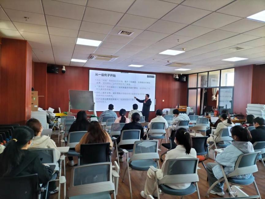 20231121日,人文学院邀请上海交通大学青年学者杨帆副教授做学术讲座,学院副院长李正东教授致欢迎词,讲座由劳动与社会保障系主任戴建兵副教授主持,社会工作专业硕士研究生和创意城市管理方向学术型研究生聆听了讲座。