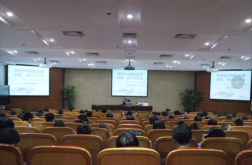 4月22日晚18:00,上海市优秀宣讲员卢冰应邀为全校师生作了题为“领导讲话稿的起草思路、技巧与方法”专题讲座的第一讲。第一讲的主题是“特定身份之话语:应景性讲话”。全校师生共计240余人聆听了本场讲座。
