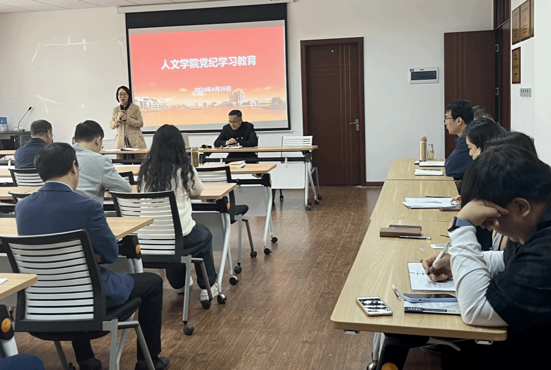 为进一步增强党员教师的纪律意识,切实加强师德师风建设,4月26日下午,人文学院党总支在第六学科楼A319召开党纪学习教育暨师德师风专题学习会,全体教职工参加此次会议,会议由党总支书记周文主持。