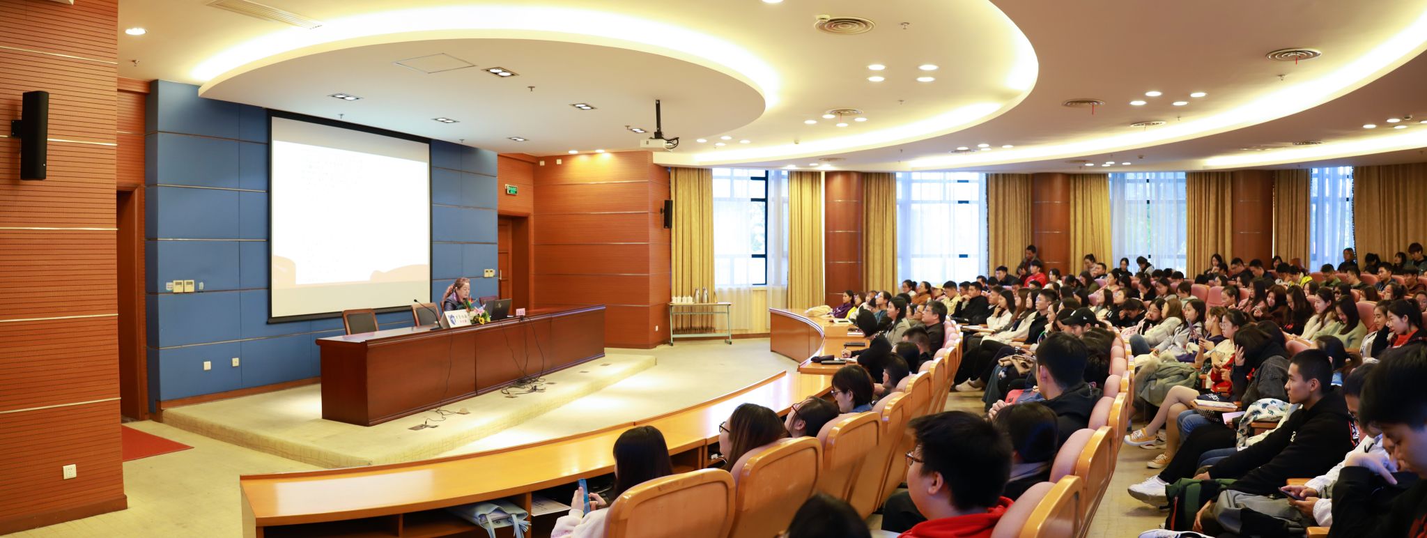 人文学院院长刘红军,党总支书记周文,学校机关党总支的党员代表,海湾旅游区党员代表以及全校200余位师生代表聆听了讲座。