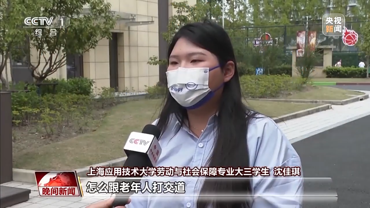 近日,上海首届大学生老年社工培训班结业仪式在上海开放大学举行。此次培训吸引了来自复旦、华东师大等上海全市18所高校、21个专业的超200名大学生参训。上海应用技术大学劳动与社会保障专业大三学生沈佳琪代表学校接受央视采访。