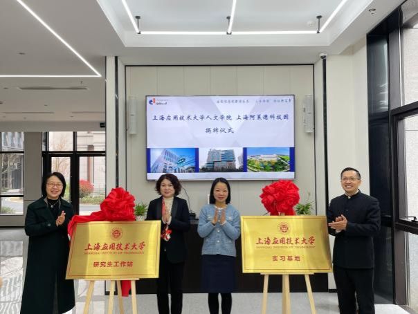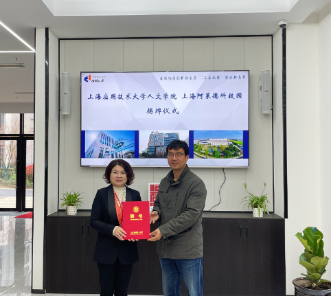 双方共同为“上海应用技术大学研究生工作站”“上海应用技术大学实习基地”和“全开放自助图书馆阿莱德分馆”揭牌,张向前院长代表学院向平珏颁发了“创新创业导师”聘书,学院副院长肖昕茹向平珏颁发了“研究生实践导师”聘书。