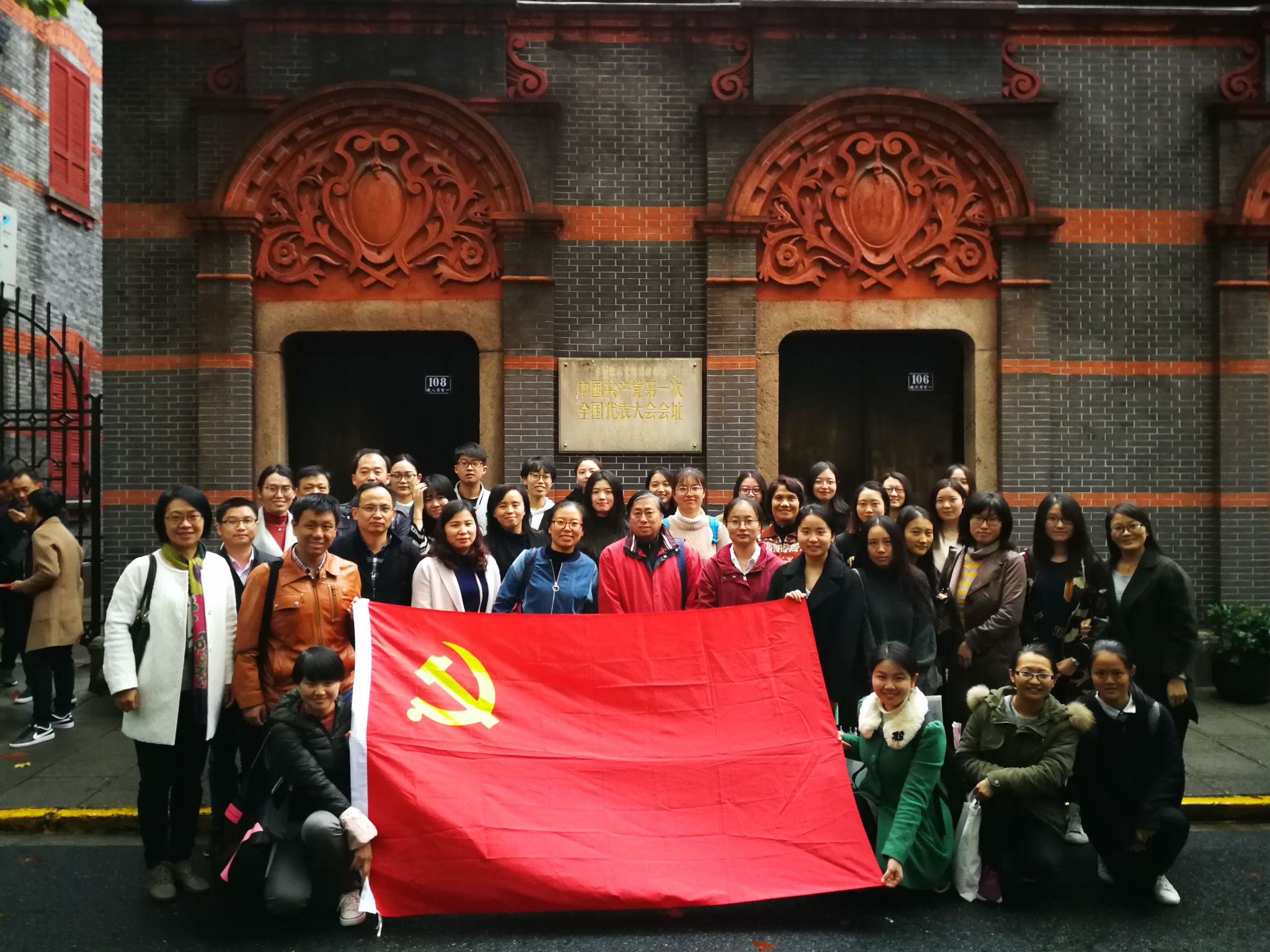 随后,全体党员来到党的诞生地--中共一大会址参观学习,缅怀革命先烈,追寻共产党人的精神密码。党员们依次参观了珍贵的文物,重温了一幅幅记载着革命历史的图片,近代漫画《时局图》,列强瓜分,熊、鹰、犬盘踞中国版图;清末列强赔款的惊人数字……师生们时而聆听,时而交流,感受着当年积贫积弱的中国,感受着96年来党孜孜以求的奋斗精神,无限感慨,热血澎湃。