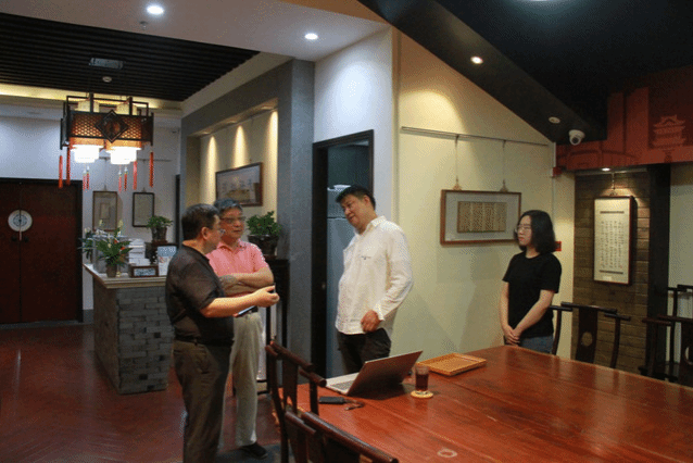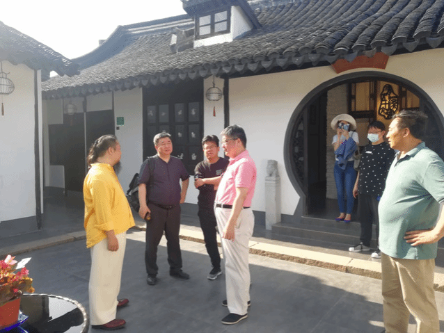 清溪古镇是奉贤区落实国家乡村振兴战略的重要举措,考察活动中,刘红军院长与上海东方桃源实业发展有限公司吴志飞总经理就古镇开发过程中的文化资源融入与保护、文创基地建设也进行了深入探讨。