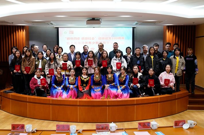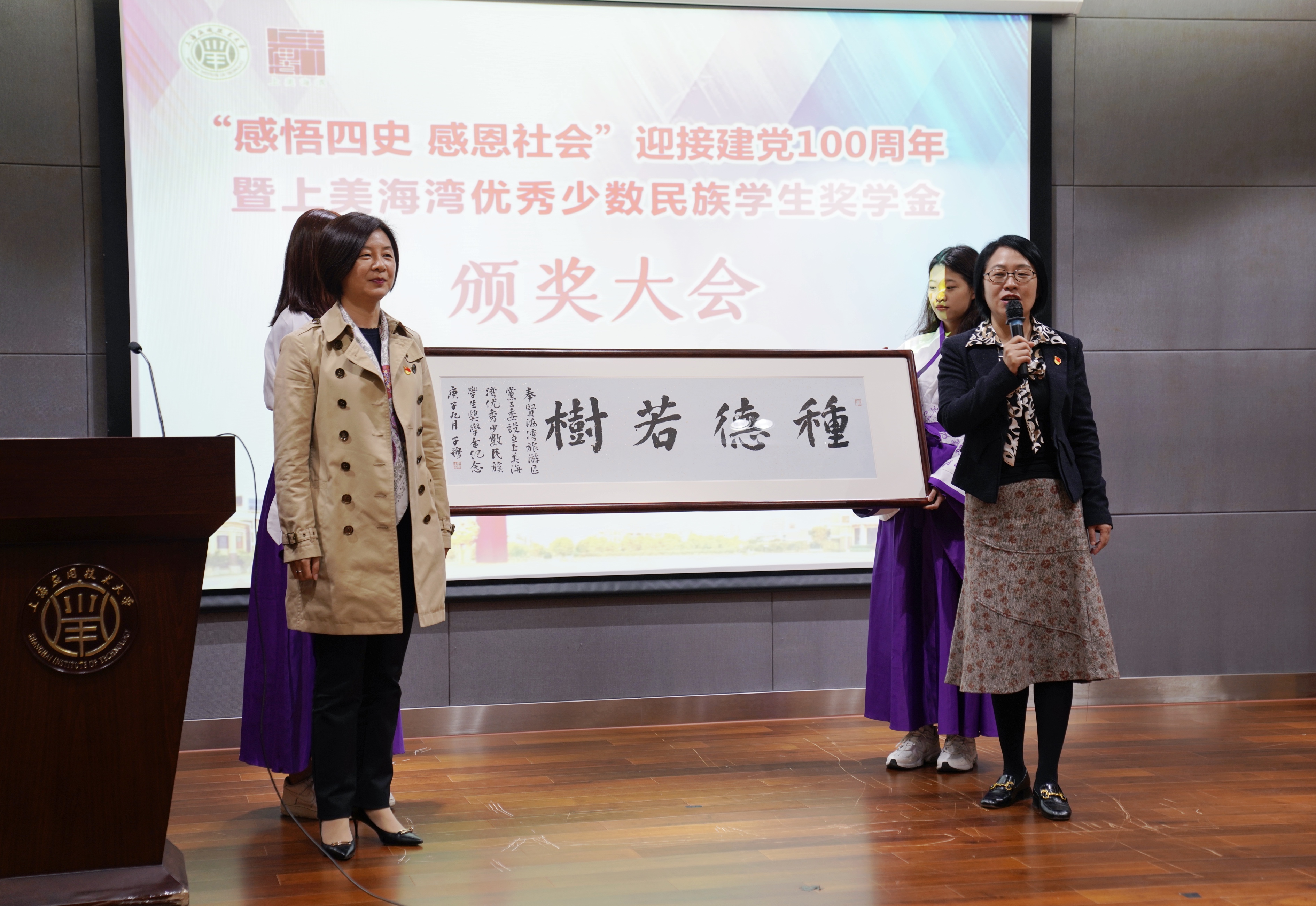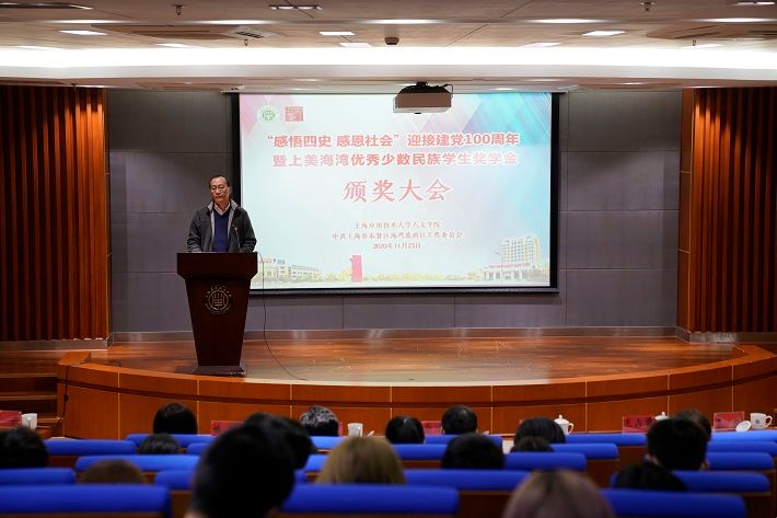 11月23日下午,人文学院举办“感悟四史,感恩社会”迎接建党100周年暨“上美海湾优秀少数民族学生奖学金”颁奖大会。校党委副书记、纪委书记何星海出席并致辞,奉贤区委统战部副部长、民宗办主任余浩洁,海湾旅游区党工委书记李秋弟,党工委副书记、管委会主任姚红、我校党委学工部部长、学生处处长袁翔,校党委组织部、统战部副部长于有进,人文学院院长刘红军,党总支书记周文,党总支副书记、副院长徐津津,人文学院全体辅导员以及全体少数民族同学,150余人参加此次大会。
