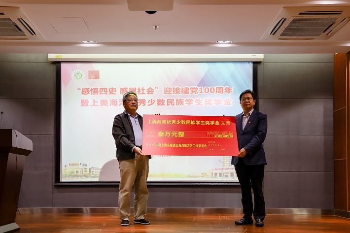 奉贤区委统战部副部长、民宗办主任余浩洁肯定了“上美海湾优秀少数民族学生奖学金”的意义和成效,指出此次活动是党建联建、区校联动的生动事例,也是民族团结进校园的创新实践,并希望未来能与学校持续深化民族工作。