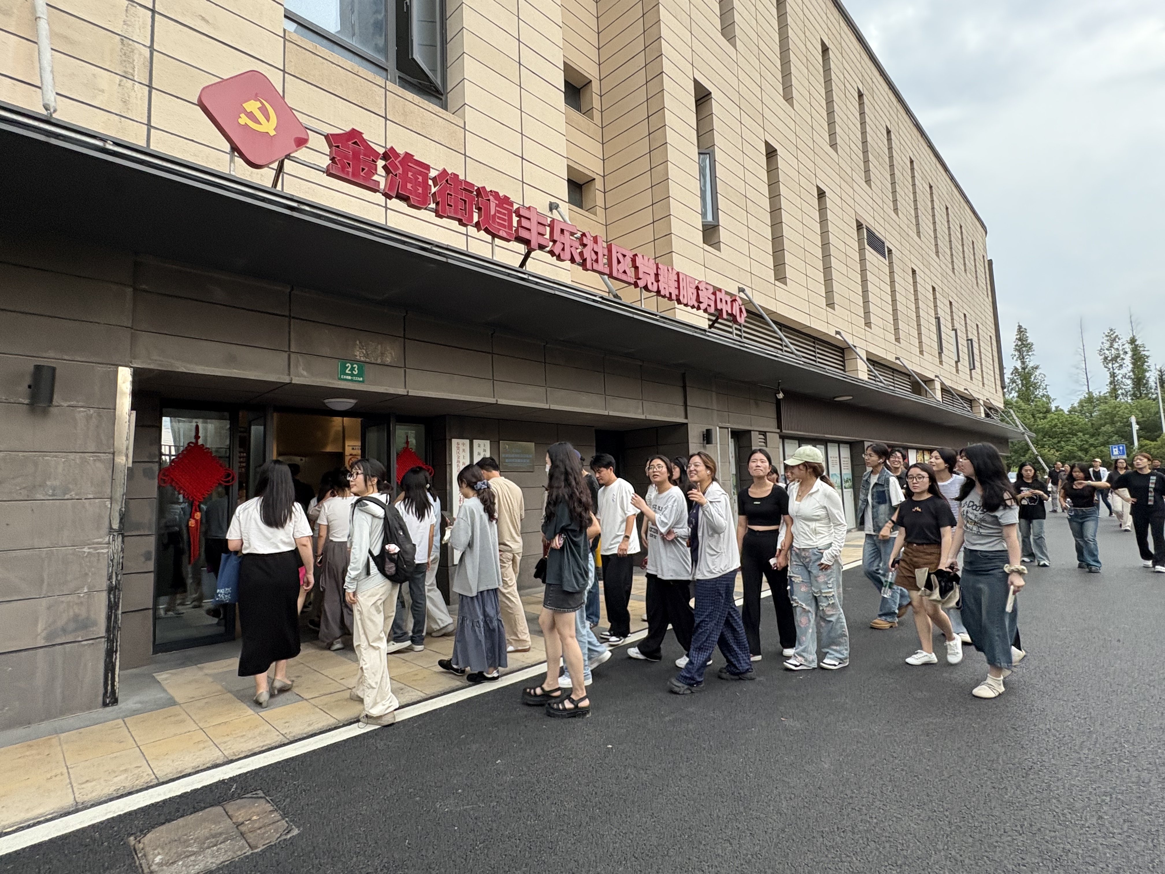 丰富党课形式、创新党课实践,2025年9月17日,人文学院党委书记周文、院长李正东率学院师生一行,前往奉贤区金海街道,开展"党建引领下的智慧社区建设与基层治理现代化"现场党课学习。金海街道党工委书记、人大工委主任朱崇江,街道党群服务中心书记屠欢等街道领导热情接待并陪同现场交流。人文学院副院长周正柱,社会工作硕士教育中心副主任严骏夫、张涛以及全体社会工作专硕五十余名新生参加此次党课。