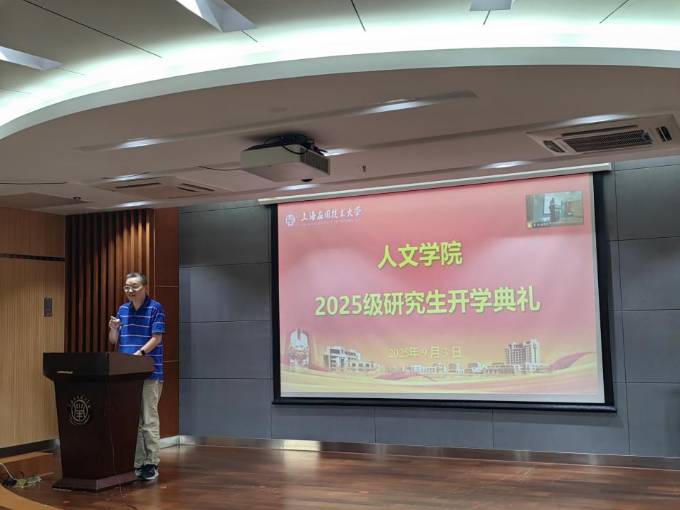 近日,上海应用技术大学人文学院2025级硕士研究生开学典礼暨研究生导师见面会在六科B210报告厅隆重举行。会议由副院长周正柱主持,人文学院党总支书记周文、院长李正东、党总支副书记兼副院长徐津津、副院长肖昕茹以及社会工作系、劳动与保障系、文化产业系系主任等导师代表,与全体2025级硕士新生齐聚一堂,共同开启新生们的研究生学术新篇章。