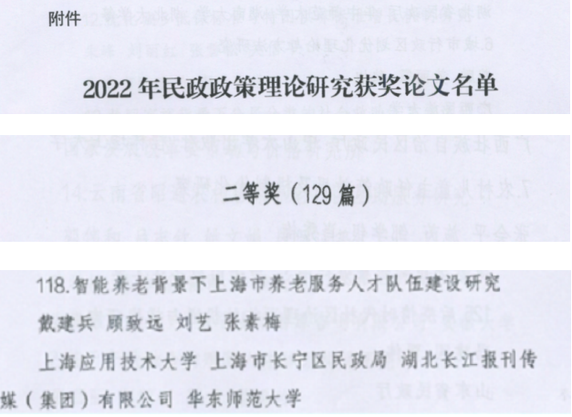 近日,民政部发布《关于2022年民政政策理论研究获奖情况的通报》(民函[2022]82号)。上应人文学院戴建兵老师撰写的《智能养老背景下上海市养老服务人才队伍建设研究》荣获民政部政策理论研究二等奖。