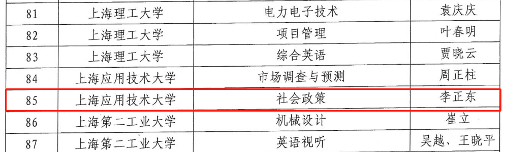 近日,上海市教育委员会公布了2021年度上海高等学校一流本科课程认定结果,人文学院副院长李正东老师申报的《社会政策》被认定为一流本科课程,是人文学院获得的又一个上海市级一流课程。