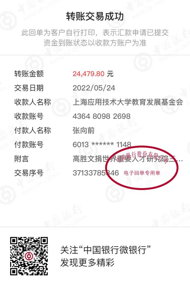 近日,澳门著名学者、国际学术研究院院长高胜文博士向上海应用技术大学与国际学术研究院共建世界重要人才中心和创新高地研究院捐赠3万澳门币,作为首笔研究基金。文学院院长张向前教授代表接收捐款。
