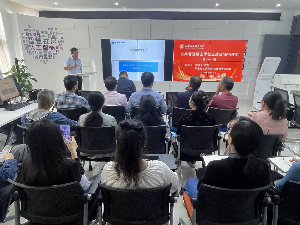 为进一步推进公共管理专业硕士(MPA)学位授权点的建设和高质量发展,10月12日上午,人文学院在奉贤校区智慧社区实验室举办了公共管理硕士学位点(MPA)沙龙。本次沙龙活动特邀华东理工大学MPA教育中心主任龚秀全教授作主题报告,人文学院院长李正东主持沙龙。