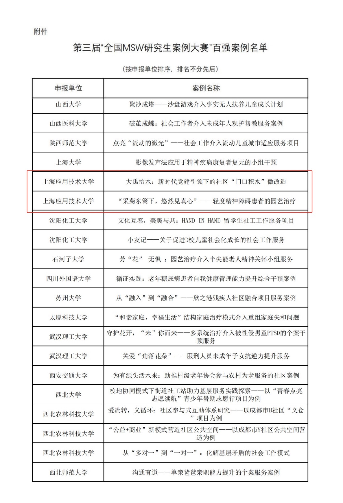 喜报:我校首届社会工作硕士研究生两个项目入选第三届全国MSW研究生案例大赛百强案例