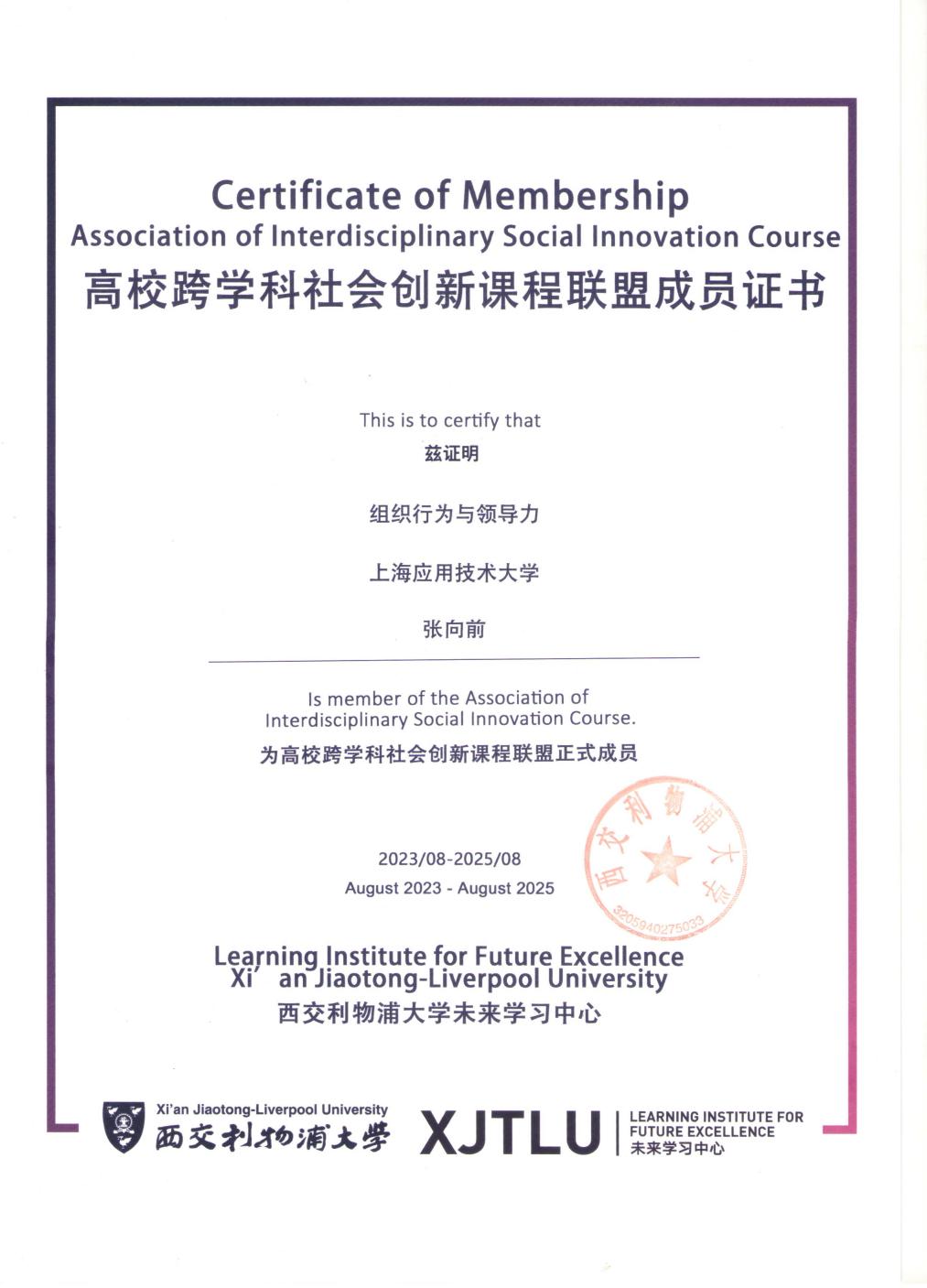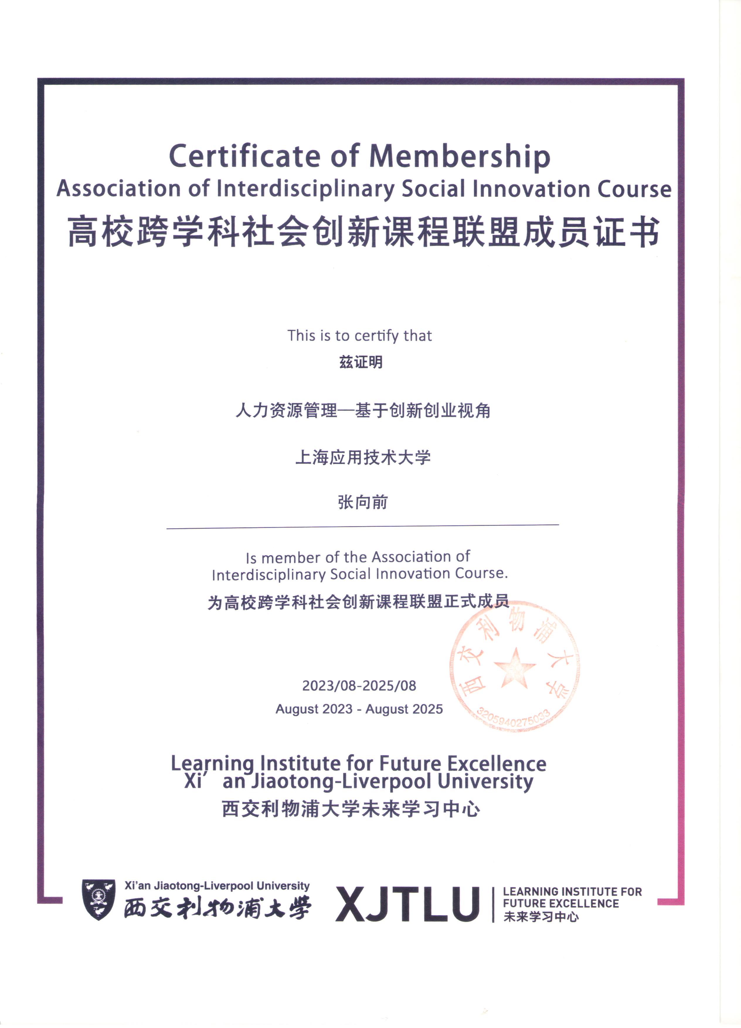 日前上海应用技术大学人文学院教师团队主讲《道德经与职业生涯管理》《组织行为与领导力》《人力资源管理--基于创新创业视角》三门课程成功加入高校跨学科社会创新课程联盟体现团队长期以来致力于学生跨学科教育和学生创新能力培养取得新进展