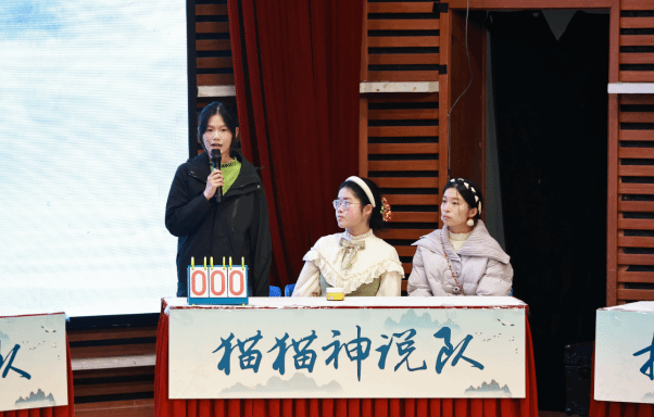 必答题环节中,选手们稳扎稳打,对答如流,展现了扎实的诗词功底;“诗意演说”环节则别出心裁,要求选手在规定时间内对给定图片进行诗词引用并进行阐述,他们或慷慨激昂,或婉转低回,深刻的理解与流畅的表达,将图片与诗词的情感世界生动地呈现给观众,赢得了阵阵掌声。随着赛程推进,紧张刺激的“飞花令” 将气氛推向高潮。围绕“三”“海”“学”等关键字,选手们你来我往,佳句频出,诗词储备与反应速度的比拼引得台下惊叹连连。最后的抢答题环节更是扣人心弦,不仅考验知识,更挑战手速与心态,现场比分交替上升,悬念迭起。