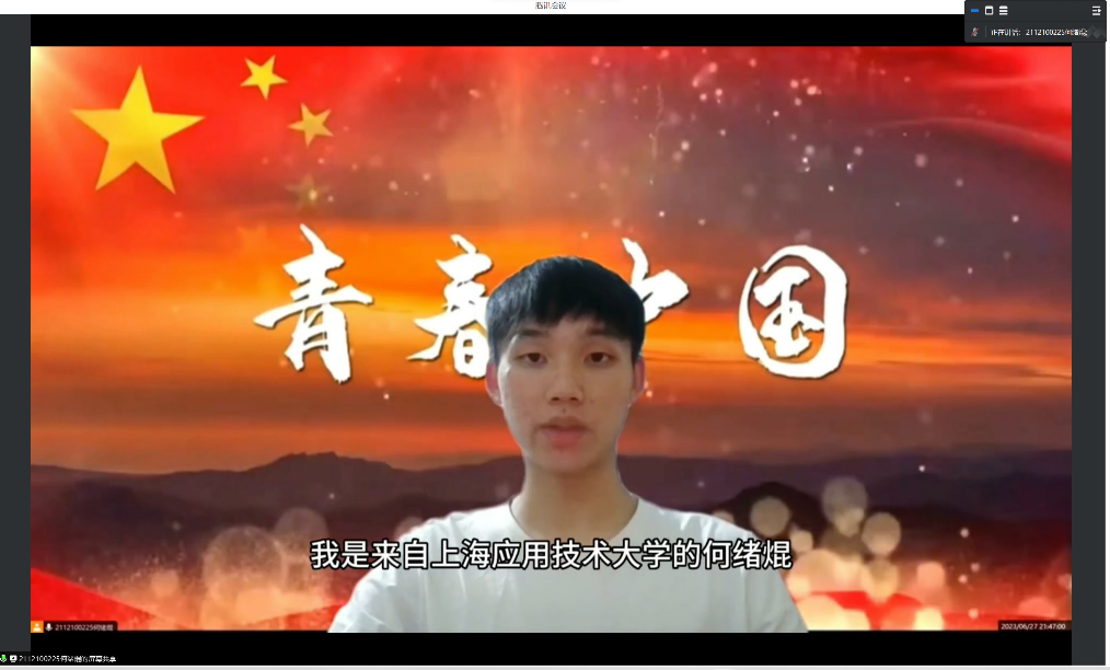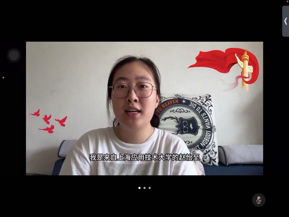 大赛分为预、决赛两阶段。预赛以评委评阅的方式进行,从36部作品中评选出10部短视频作品进入决赛。628日晚进行的线上决赛中,每位选手除分享精心制作的短视频外,还陈述了制作理念或参赛感言,并当场回答评委提问。经过激烈角逐,最终金紫珏同学《可爱的中国》荣获特等奖,张俪宁等同学荣获一等奖,何绪焜等同学荣获二等奖。